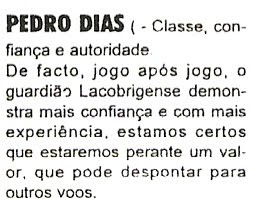 | Noticia da lesão de Pedro Dias retirada do "Noticias de Lagos" |
