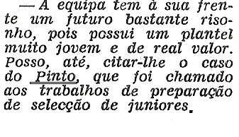 | Excerto de entrevista com Aníbal Camacho, treinador de Pinto nos júniores do C.F.E.L. |