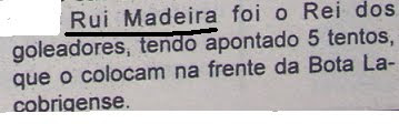 Rui Madeira foi um dos melhores pontas de lança que passaram pelo clube lacobrigense nos anos 90.Avançado rápido,bom tecnicamente e com excelente jogo de cabeça,teve o seu ponto alto na temporada 1995/96 quando,a par da boa classificação final do Esperança de Lagos (4º lugar),ainda se sagrou rei dos goleadores da 3ª Divisão ,Série F,á frente,por exemplo,do consagrado artilheiro algarvio Tó Manuel..