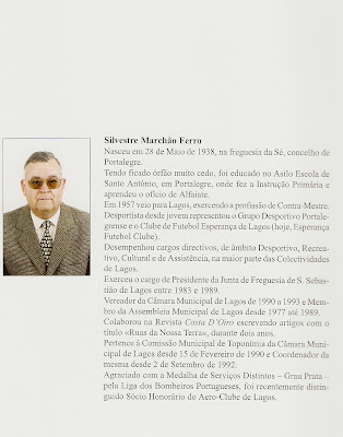 Currículo de Silvestre Ferro retirado do seu livro "Vultos na Toponímia de Lagos", gentilmente oferecido ao autor deste Blogue. (clique no texto para ampliar) |