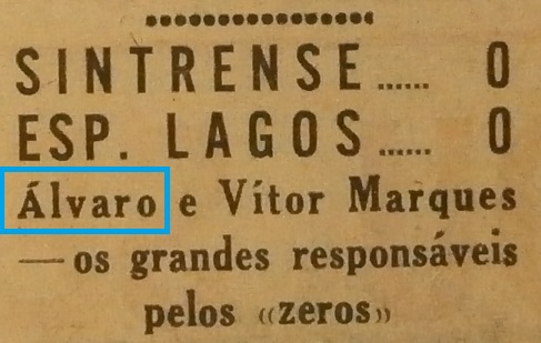 Álvaro fica para a história do Esperança como sendo o primeiro e único jogador a vir da primeira equipa do Benfica (emprestado,é certo)directamente para o clube de Lagos.Mas não é só por isso que Álvaro é recordado,o sesimbrense é lembrado também e sobretudo por ter sido o titular indiscutivel da baliza do Esperança durante a primeira época do clube na 2ª Divisão,temporada de 75/76, e pelas excelente exibições que protagonizou nos relvados(e pelados) da antiga Zona Sul.Á quem diga que,se Álvaro tivesse ficado na segunda época da equipa no segundo escalão, o Esperança não teria descido á 3ª Divisão.
