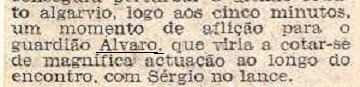 Meu amigo Alvaro. Comigo no GD Sesimbra sempre foi meu parceiro da primeira fila naquelas "quartas-feiras" malditas em que corriamos até um bocadinho antes de morrer.Fez mais de cem jogos comigo no Sport Lisboa e Saudade e recordo-o como um dos maiores GR que jogaram comigo.Joguei com J.Henriques,com Bento,com Damas e Alvaro estava muito perto deles.A vida pregou-lhe uma partida que lhe roubou anos de vida!Vou visitá-lo á prisão,pois tenho-o como um dos meus maiores amigos! J. Charouco.