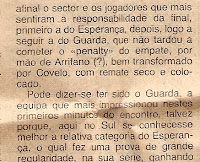 A final,disputada em Leiria foi,segundo as crónicas,foi um bom jogo entre duas boas equipas prevalecendo a maior experiência do Esperança nos penaltys.Ai também esteve bem o guarda-redes Carlos Alberto que defendeu dois remates aproveitando Vitor,Mendes e Luis Manuel para marcarem os seus e darem uma enorme alegria ás gentes de Lagos.