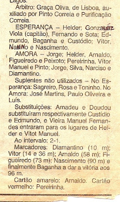 Contra o SLB a surpresa ia aconteçendo,uma excelente exibição do Esperança e o Benfica a ganhar á justa por 2-1,com uma arbitragem polémica.Carlos Sério,na altura o treinador do CFEL diria no fim que "..isto foi um roubo".