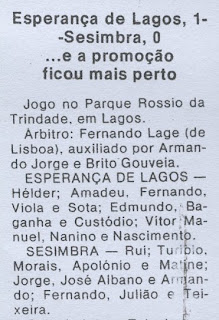 Em 19 de Abril de 1981 ,o Esperança de Lagos recebe a visita do Benfica em jogo a contar para a Taça de Portugal.
