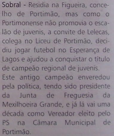| 64/65-Esp.LAGOS------------jun. ------------------------------* 73/74-Sport Lagos Benfica--Dist. ------------------------------* 84/85-C.D.Odiáxere---------Dist. |