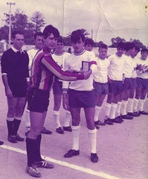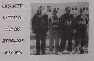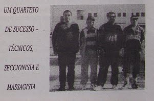 | Os treinadores Reina e José Canelas,ao centro,ladeados pelo seccionista Manuel António e o massagista Betes |