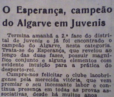 Sob a orientação do antigo jogador esperancista Reina,coadjuvado por José Canelas,dupla que já tinha trabalhado com sucesso no Centro de Lagos,os jovens esperancistas,a maior parte deles também vindos dos iniciados do Centro,além de vencerem a Zona Barlavento e garantirem a promoção,ganharam também a final da competição contra o vencedor da Zona Sotavento,o Maritimo Olhanense.