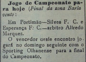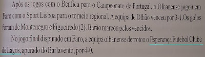 Na final Regional,disputada com o Olhanense,o Esperança de Lagos perdeu por 0 x 4