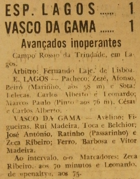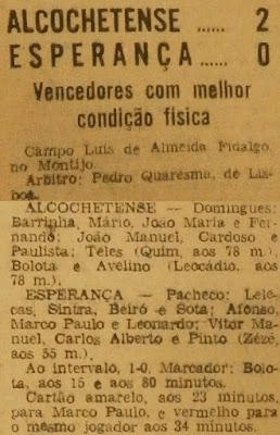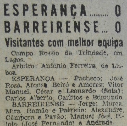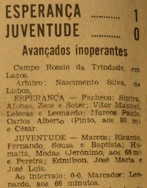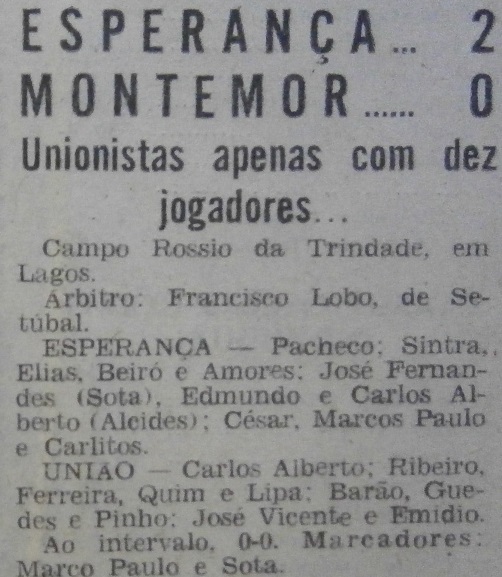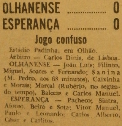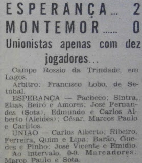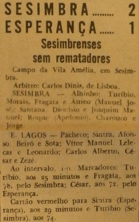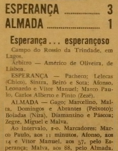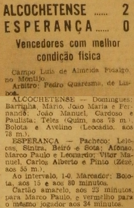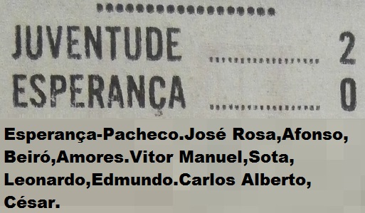 | Em cima:Betes(Mass.)Zé Rosa,César,Afonso,Cintra,Lelecas, Zézé,Marinho,Valentim Alexandre (Trein.).Em baixo:Pacheco, Sota,Vitor Manuel,Leonardo,Marcos Paulo,Carlos Alberto, Pinto,Zé Pereira. |