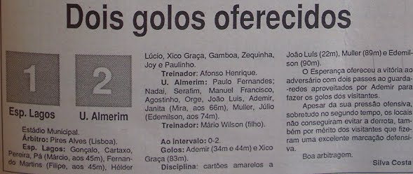 | Em cima:Edmundo,Márcio,Pá,Fernando Martins,Joy,Cardoso.Em baixo:Paulo,Gambõa,Zequinha, Nerú,Cartaxo. |